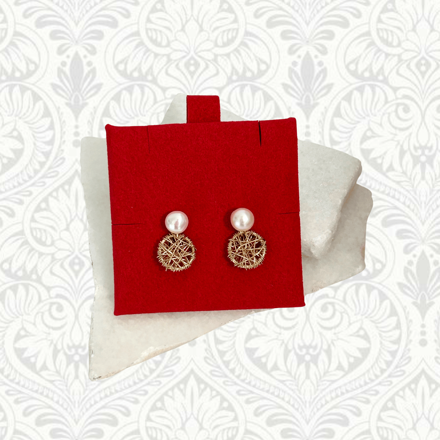 These dreamcatcher earrings feature a bold design, combining set cultured pearls and gold-plated threads in a harmonious dance. Inspired by the ancient legend of dreamcatchers, these earrings not only embody elegance but also envelop you in an aura of mystique and charm. Versatile and enchanting, they enhance your beauty with a touch of timeless magic.