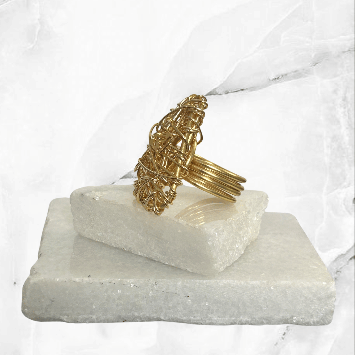 This statement ring is a handmade masterpiece, making each piece truly unique. It is a striking accessory that exudes elegance and sophistication.