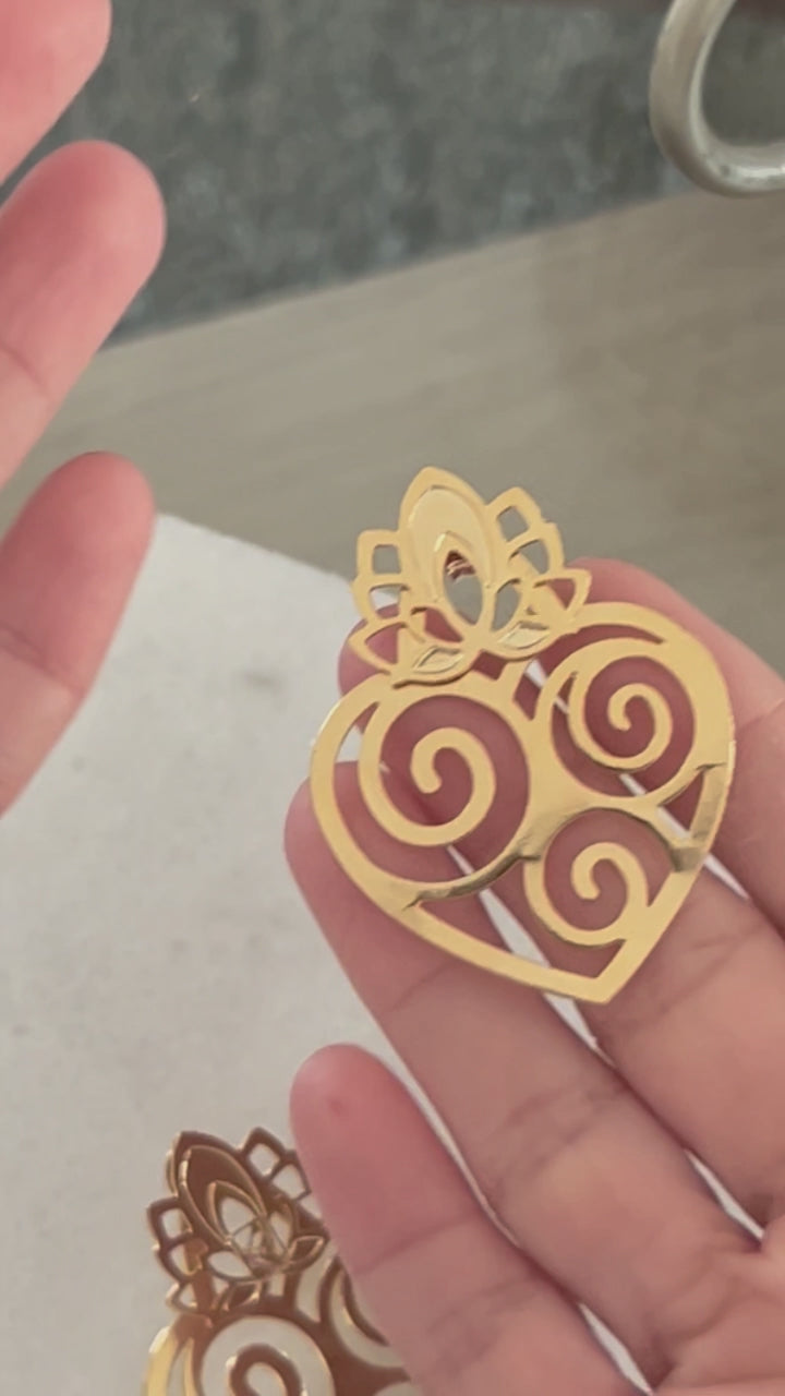 These earrings transcend the conventional, blending delicate design, meaningful symbolism, and the beauty of nature. At the center of this creation lies a triskelion, symbolizing the harmony of body, mind, and soul, elegantly framed within a heart—the universal emblem of love. This composition is complemented by a refined lotus flower, representing rebirth, purity, and enlightenment. This powerful symbol reminds us that even in the most challenging moments, we can always blossom and find our balance. Each pair of earrings invites you to embrace personal transformation, carrying with you a message of hope and resilience.